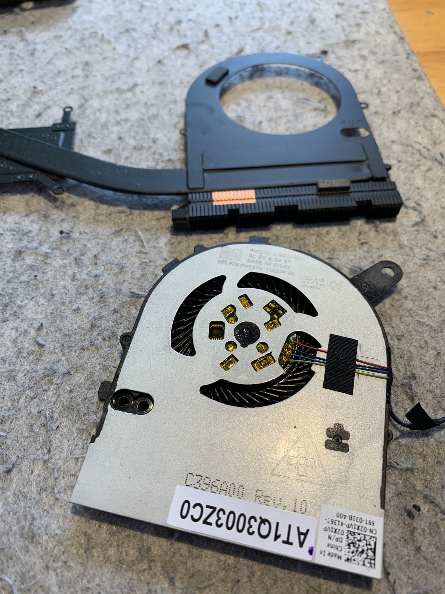 หน้าที่ของพัดลมในโน๊ตบุ๊ค คือ ดูดอากาศจากด้านนอกเครื่องที่อุณหภูมิต่ำกว่า เป่าผ่าน ชุดช่วยระบายความร้อน Heatsink (เป็นท่อแบนๆสีทองแดง) เพิ่อทำการลดหภูมิของ