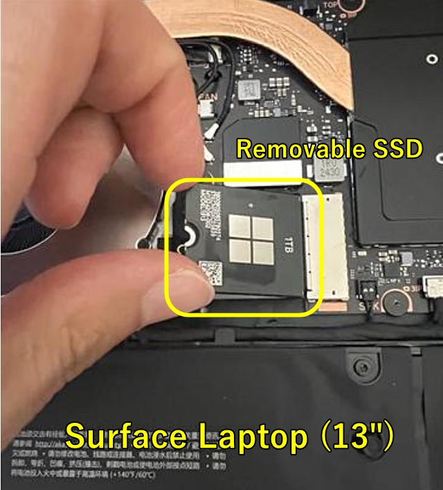 แต่สำหรับ Surface Laptop 13” รุ่นใหม่ สามารถ ถอดเปลี่ยน SSD ได้ โดยใช้ SSD ขนาดมาตรฐานแบบ 2230 NVMe ซึ่งรองรับการอัปเกรดถึง 2TB