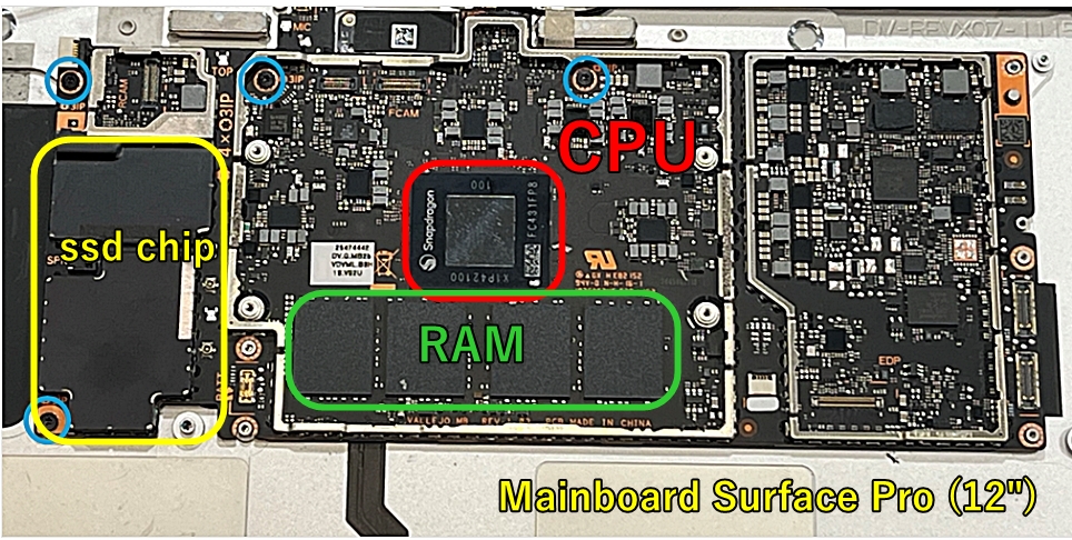 Surface Pro 12” ไม่สามารถอัปเกรด SSD ได้ เนื่องจากใช้เทคโนโลยี SSD แบบฝังติดกับเมนบอร์ด (chip-on-board) ซึ่งไม่มีสล็อตให้ถอดเปลี่ยนหรืออัปเกรด