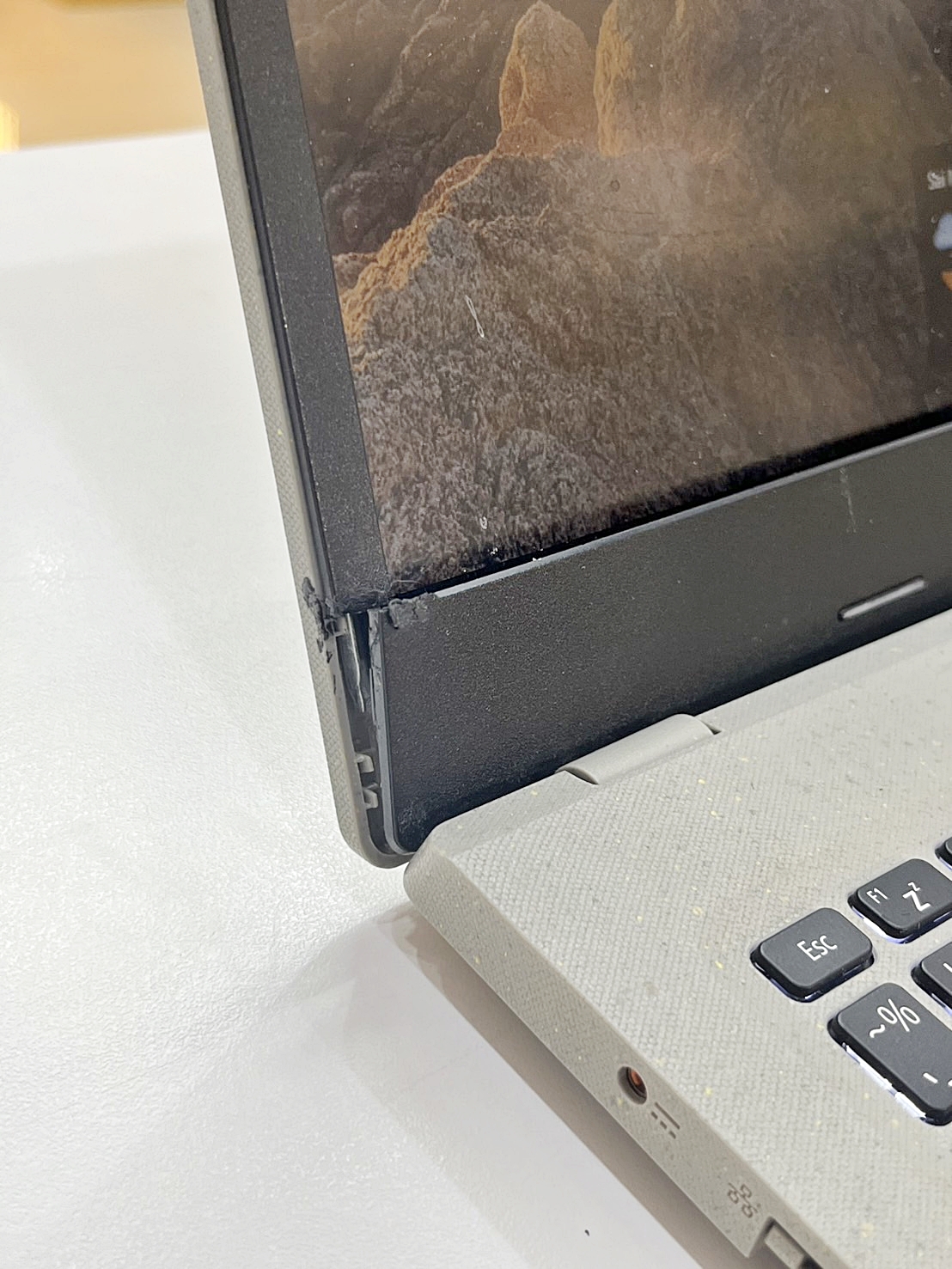 Acer AV51 ใช้วัสดุที่เป็นมิตรกับสิ่งแวดล้อม ทำให้หลายคนคิดว่าเครื่องพังง่ายเพราะใช้วัสดุรีไซเคิล แต่ความจริงแล้ว โน๊ตบุ๊คแบรนด์อื่นที่ใช้วัสดุแข็งแรงกว่า ก็สามารถเกิดปัญหานี้ได้เช่นกัน หากจุดหมุนฝืดและไม่ได้รับการดูแล